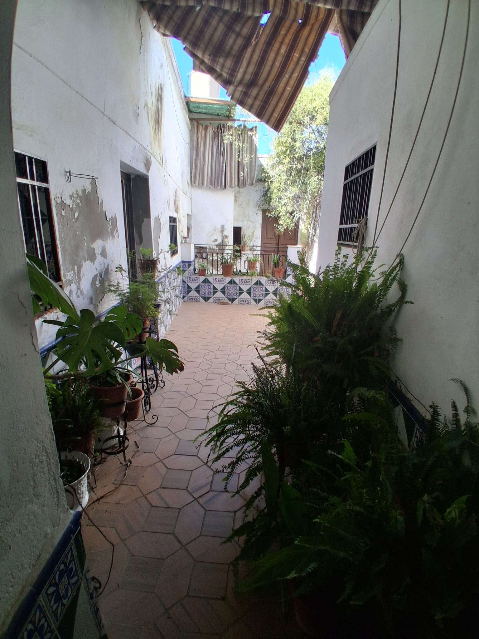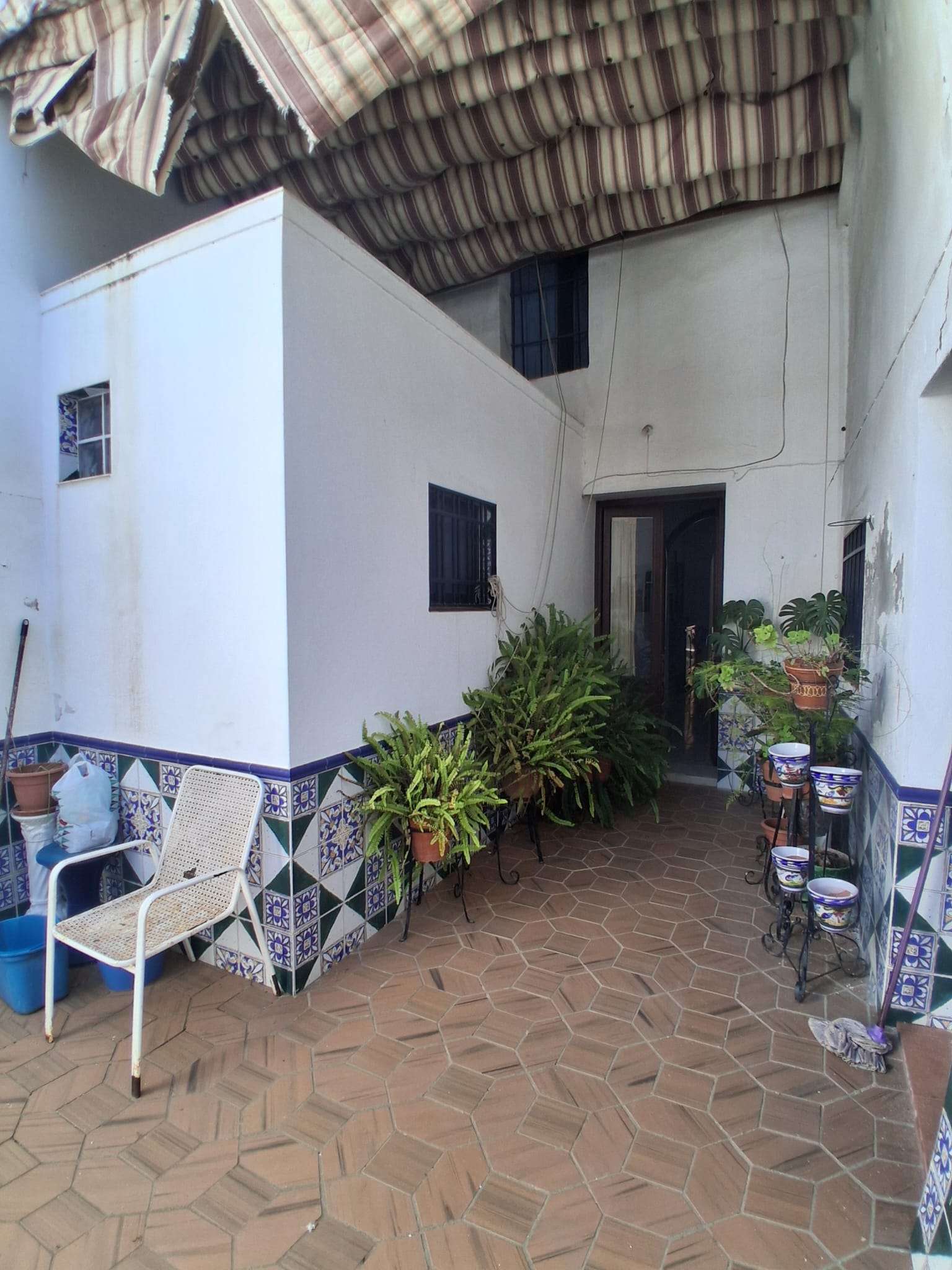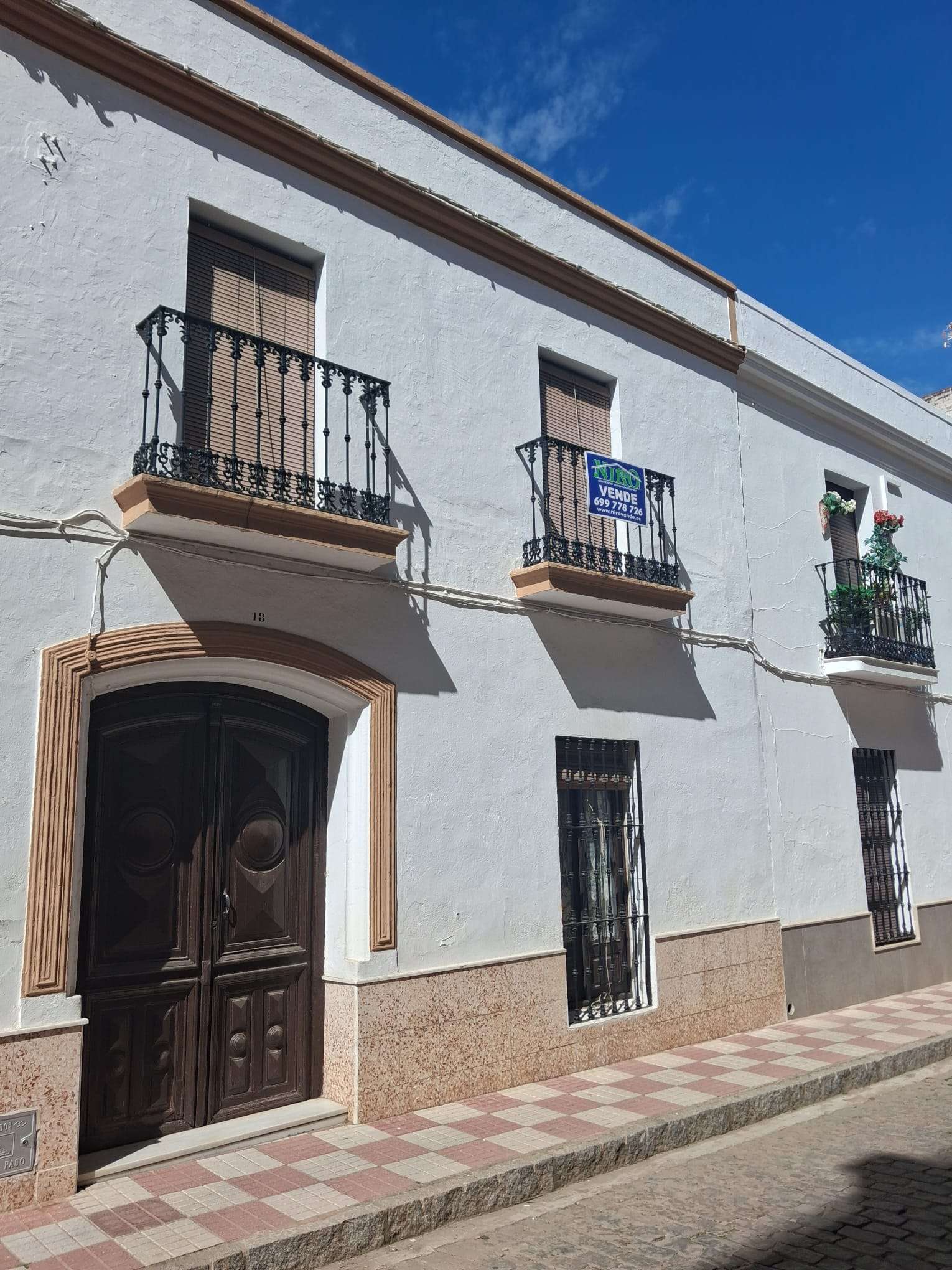 Se vende inmueble (casa) céntrica, en Oliva de la Frontera, de una superficie de unos 289m2 en solar y unos 260m2 construidos en planta baja y alta, más trasteros y almacenes. En planta baja se distribuye entre medianeras, con dormitorios a un lado, en total 4, con sala de estar o salita, 2 baños interiores, cocina amueblada, con despensa, patio principal estilo andaluz, y corral. Altos doblados, con tejados de teja árabe y maderos. Zona calle Encinasola.