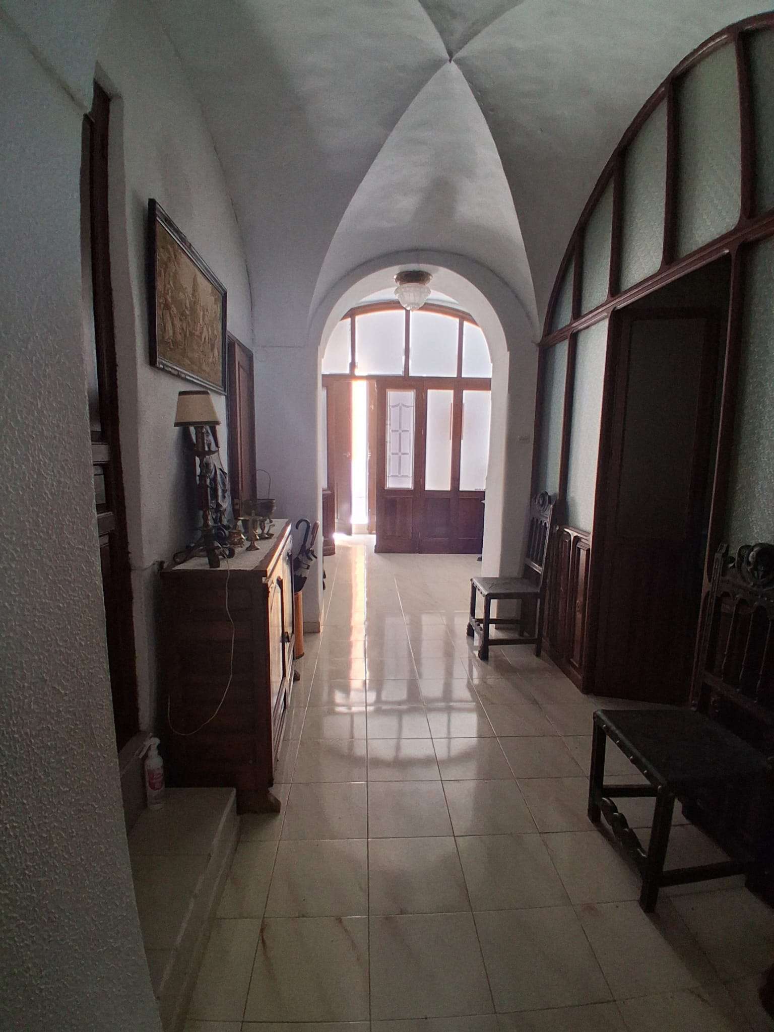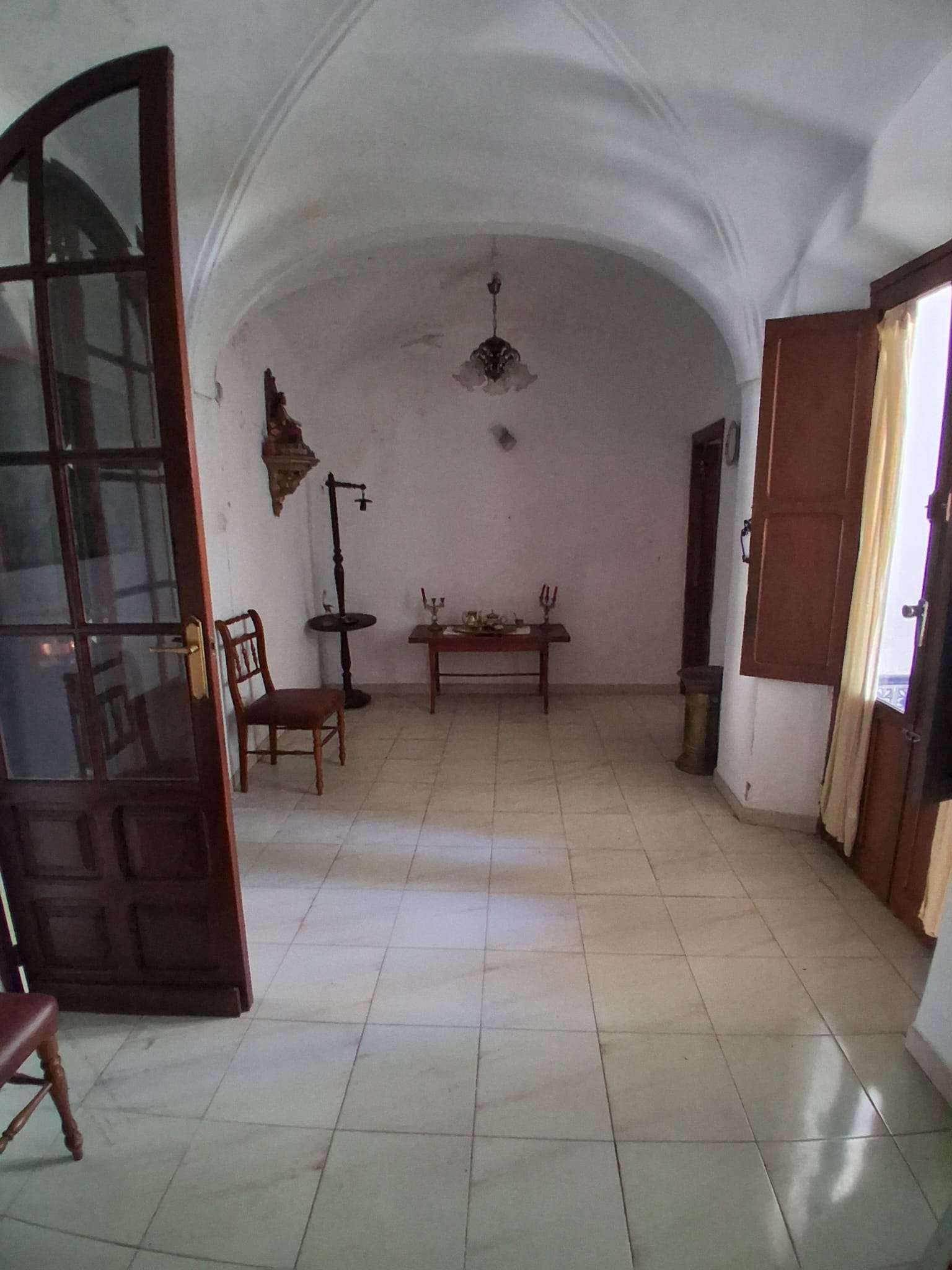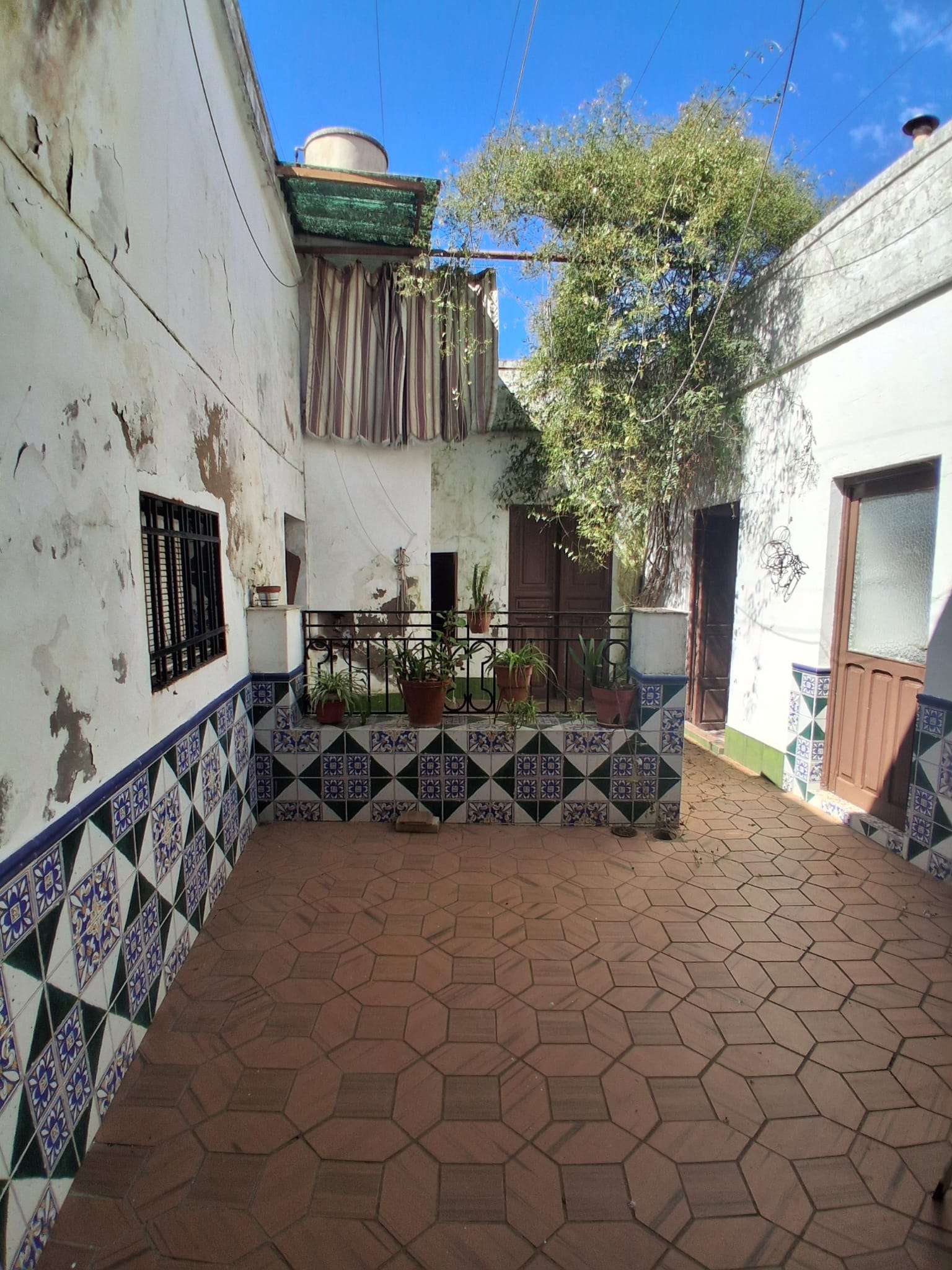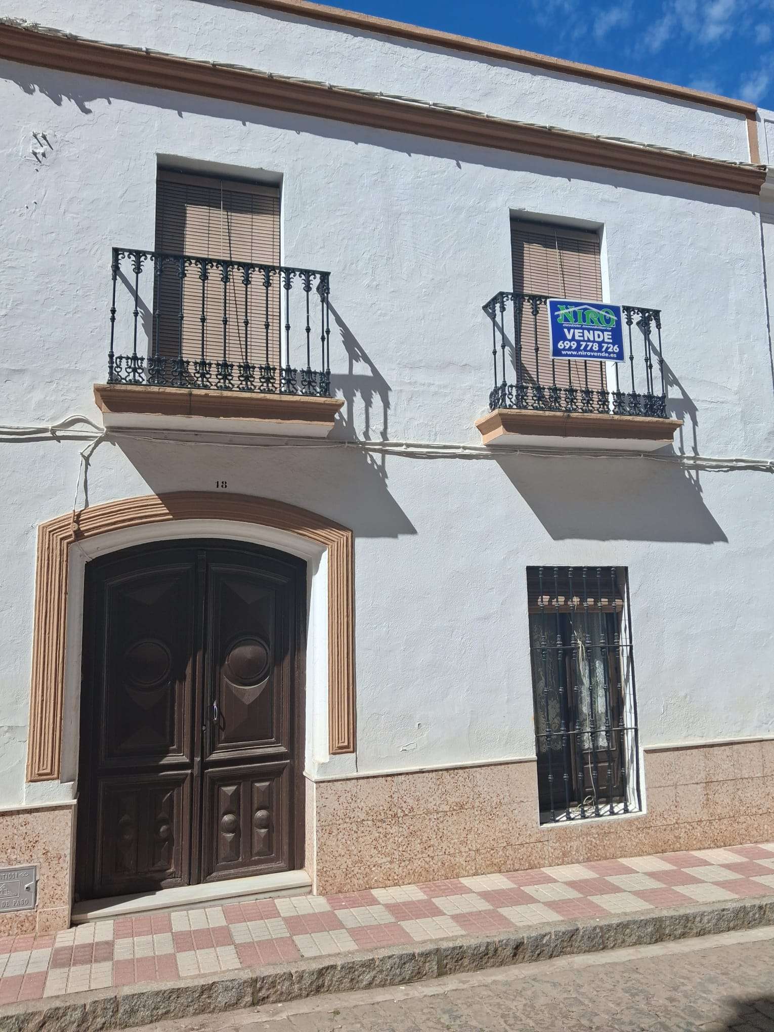 Se vende inmueble (casa) céntrica, en Oliva de la Frontera, de una superficie de unos 289m2 en solar y unos 260m2 construidos en planta baja y alta, más trasteros y almacenes. En planta baja se distribuye entre medianeras, con dormitorios a un lado, en total 4, con sala de estar o salita, 2 baños interiores, cocina amueblada, con despensa, patio principal estilo andaluz, y corral. Altos doblados, con tejados de teja árabe y maderos. Zona calle Encinasola.